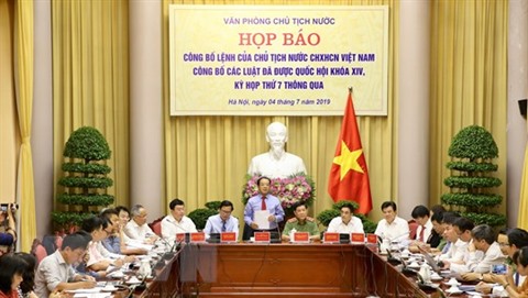 Il s’agit des lois concernant l’amendement et le complément d’articles de la loi sur les affaires d’assurance, de celle sur la propriété intellectuelle, de la loi sur la gestion des impôts N°38/2019/QH14, la loi sur l’investissement public 2019, la loi sur l’architecture, la loi de l’éducation 2019, et la loi sur la prévention et la lutte contre les effets nocifs de l’alcoolisme. la Loi sur la propriété intellectuelle, et la loi de l’exécution des décisions pénales.