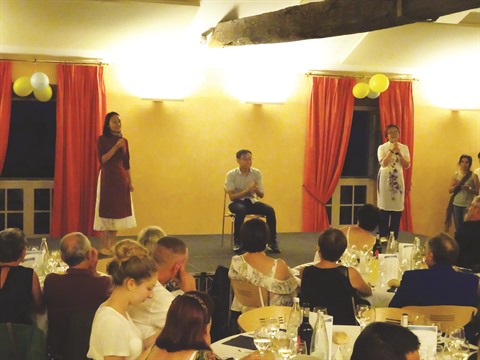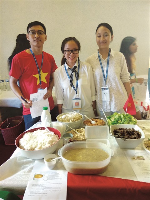 | Les Vietnamiens et leur plat lors de la soirée "Cuisine du monde". |