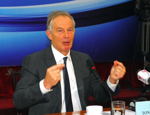 | L'ancien Premier ministre britannique Tony Blair, le 4 mars à Hanoi. |