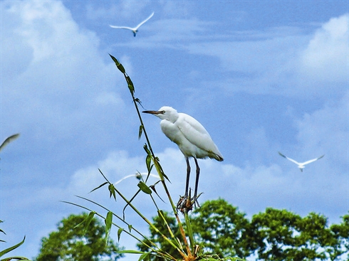 Actuellement, la héronnière abrite des milliers de hérons de quatre espèces. Pendant la saison de nidification (d’avril à septembre), la surpopulation est telle que beaucoup de couples doivent aller chercher ailleurs un gîte, ce qui n’est guère facile tant la pression de chasse est élevée. En hiver, la héronnière voit ses effectifs grimper en flèche. Pour permettre à tout ce petit monde de se percher, Ngân a disposé horizontalement de longues perches de bambou. Actuellement, il est en train de planter de nouveaux cajeputiers pour résoudre la crise du logement. Tout ce qu’il fait, c’est par simple amour des oiseaux, il ne reçoit rien en échange.