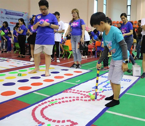 | Une des activités dans le cadre de la Journée de sensibilisation à l'autisme au Vietnam, le 1er avril à Bac Ninh. |