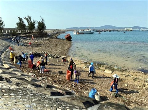 | Habitants participant au nettoyage de l'environnement à Cô Tô, province de Quang Ninh (Nord). |
