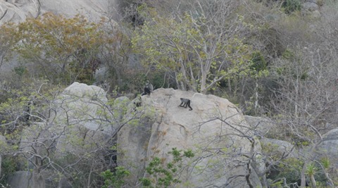 | Un roupeau de langurs de douc à jambes noires dans la province de Ninh Thuân. |