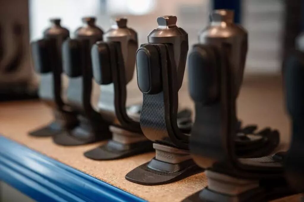 | Des parties de prothèses de jambe, présentes au centre de réparation du Village paralympique. |