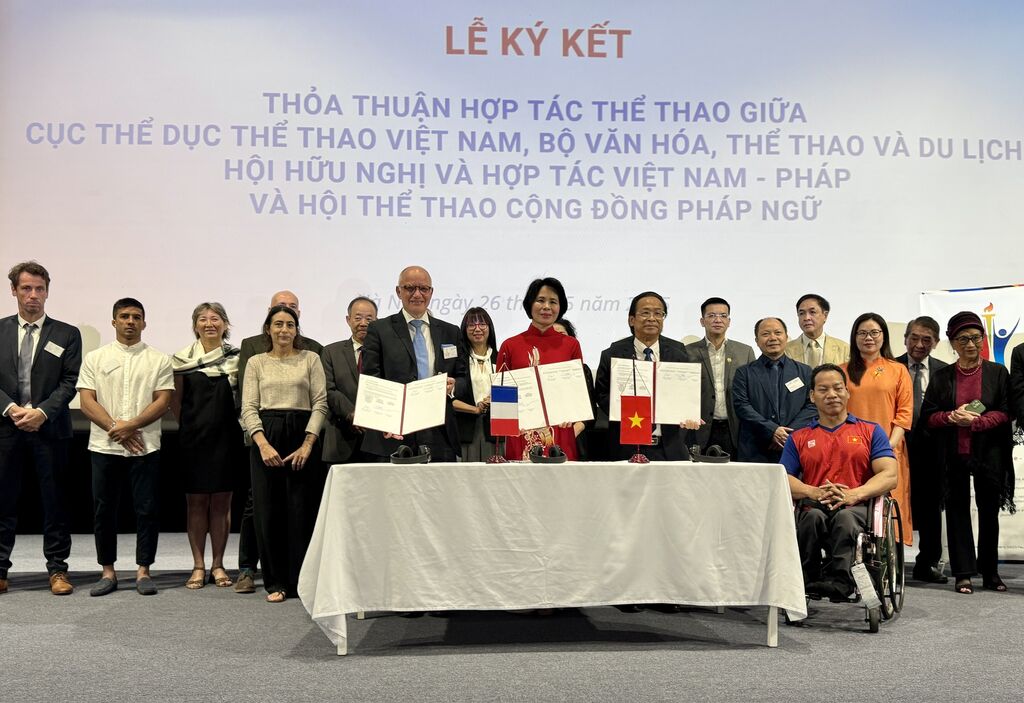 | Signature du protocole de coopération entre le Département des sports (relevant du ministère de la Culture, des Sports et du Tourisme), l’Association d’amitié et de coopération Vietnam - France et l’Association francophone pour le sport (AFS). |