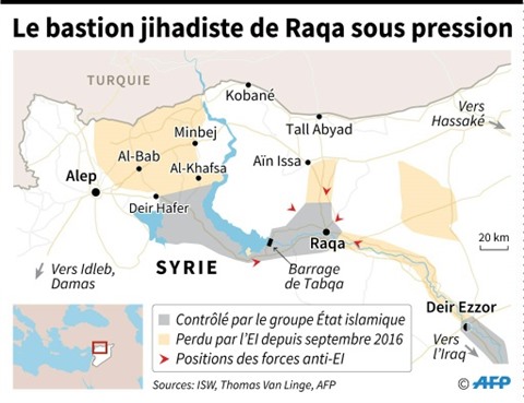 Soutenues par la coalition internationale menée par les États-Unis, les Forces démocratiques syriennes (FDS), fer de lance de la bataille antijihadistes dans le Nord du pays en guerre, doivent encore surmonter plusieurs obstacles, notamment le barrage et l'aéroport de Tabqa, une ville située à 50 km au sud-ouest de Raqa, selon une source au sein des FDS.