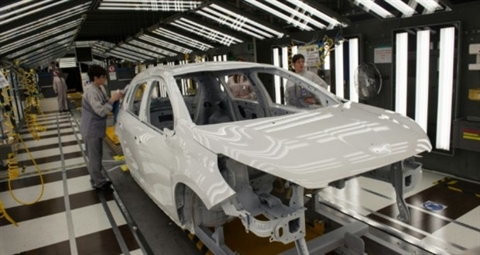 | Une chaîne de production de PSA Peugeot Citroen à Mulhouse (Nord-Est de la France). |