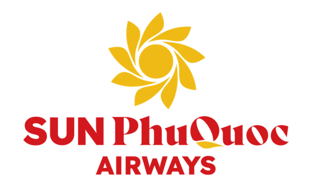 La couleur principale du logo Sun PhuQuoc Airways est le jaune doré, clair comme la lumière du soleil - représentant la chaleur et l’énergie positive - aussi la lumière qui débute chaque voyage. Elle est combinée avec le rouge écarlate (une teinte rouge vive et luxueuse) dans le nom "Sun PhuQuoc Airways" pour créer une image marquante dans le ciel. Lorsqu’il est appliqué sur le fuselage de l’avion, cet emblème se transforme en une teinte dorée-orangé métallique moderne, rayonnante comme le soleil - exprimant l’esprit pionnier et le style visuel distinctif de la compagnie. Notamment, le trait de liaison de la lettre Q dans "PhuQuoc" est conçu comme une île émergeant de la mer, évoquant l’île des Perles du Vietnam.
