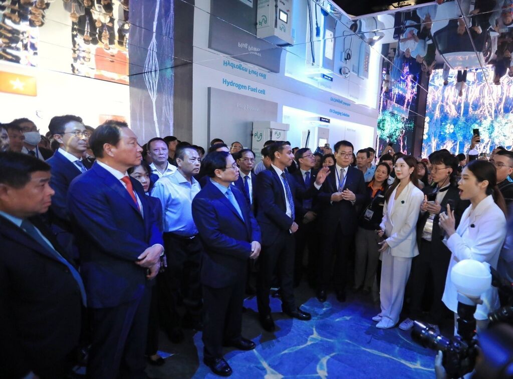 | Le Premier ministre Pham Minh Chinh (3e à gauche) et des délégués visitent l'exposition internationale "Innovation et Créativité du Vietnam 2023" lors de l'inauguration du Centre national d'innovation du Vietnam à Hoà Lac, en banlieue de Hanoï, en octobre dernier. |