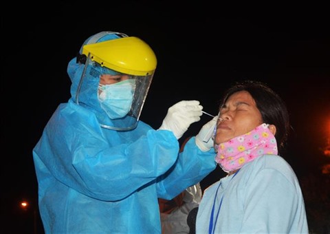 | Tests de dépistage du nouveau coronavirus au port de Tho Quang, en ville centrale de Dà Nang. |