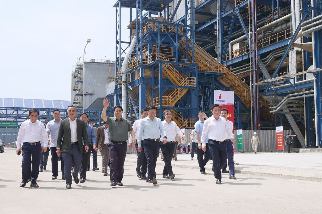 | Le Premier ministre Pham Minh Chinh (premier plan, 3e à gauche) à la centrale thermique de Thai Binh 2 lors de sa visite au mois d'avril dernier. |