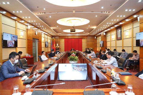 | Une visioconférence du PVN, le 20 mars à Hanoï. |