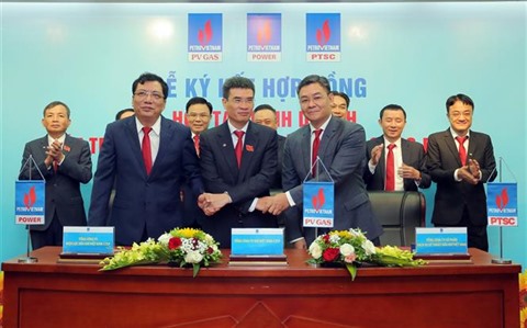 | Cérémonie de signature du contrat de coopération commerciale entre PV GAS, PV Power et PTSC, le 3 août à Hanoï. |