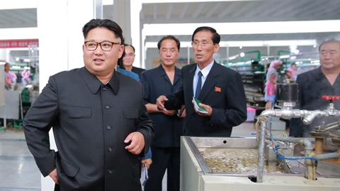 | Le dirigeant de la RPDC, Kim Jong-Un inspecte une usine à Pyongyang le 21 juin. |