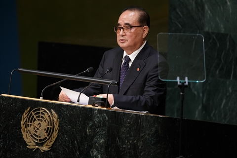 "Si les États-Unis procèdent à des changements politiques courageux, une amélioration spectaculaire de l'environnement de sécurité de la péninsule coréenne se produira et elle répondra en fin de compte aux inquiétudes américaines sur la sécurité", a déclaré devant l'Assemblée générale de l'ONU le ministre des Affaires étrangères de la RPDC, Ri Su Yong, dans une référence à l'arsenal nucléaire de Pyongyang. "C'est la meilleure option que nous puissions nous permettre".