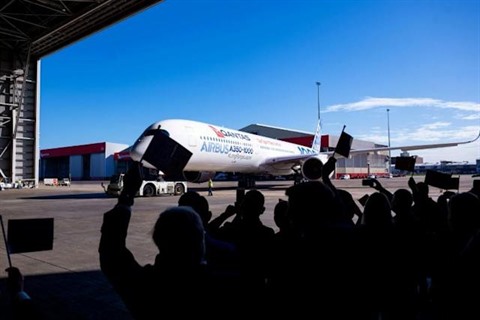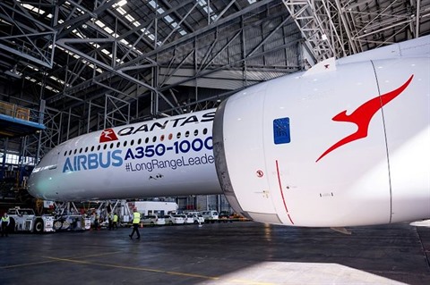 | Un Airbus A350-1000 dans un hangar de l'aéroport international de Sydney, le 2 mai. |