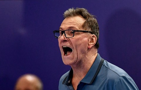 | L'entraîneur des Bleues, Olivier Krumbholz, lors du match de handball face aux Pays-Bas, le 14 décembre 2018. |