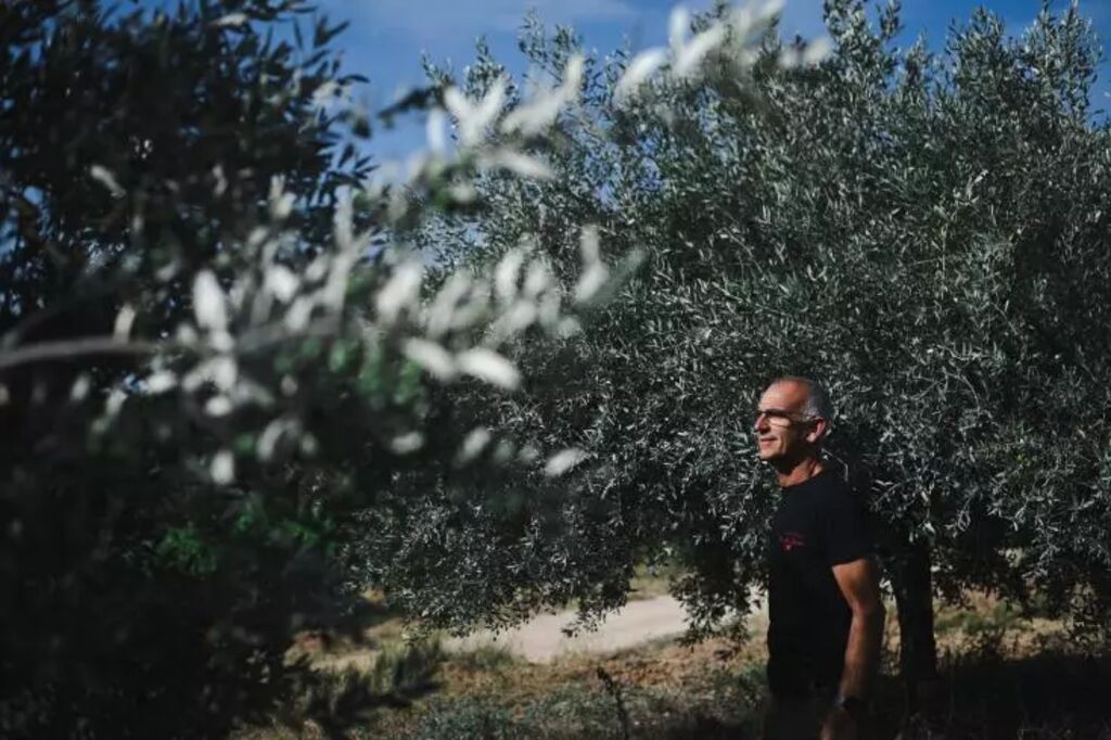 | Le vigneron Pascal Jaume inspecte les oliviers qui cohabitent avec les vignes de Vinsobres, le 18 juillet. |