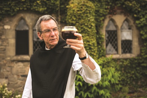 | Le moine britannique père Joseph tient un verre de bière près de l’abbaye du Mont-Saint-Bernard, dans le Centre de l’Angleterre. |