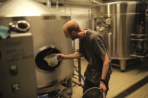 | Le frère Mateusz surveille la fabrication de la bière artisanale dans l’abbaye du Mont-Saint-Bernard. |