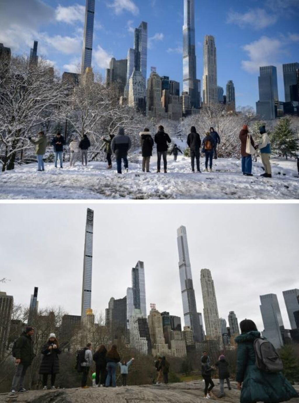 | Central Park sous la neige en 2022 et sans neige un an plus tard. Photo : AFP/VNA/CVN |