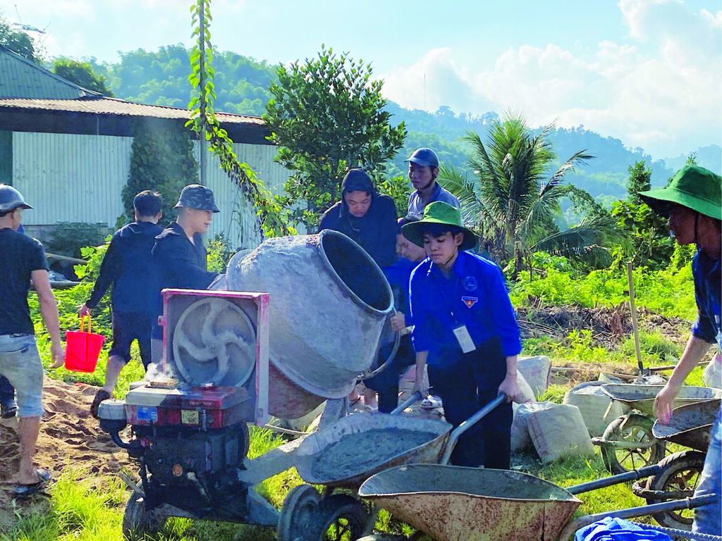 Notre premier travail consiste à construire des routes en béton, dans l'objectif d'assurer une meilleure résistance aux conditions climatiques extrêmes dans les régions montagneuses. Avec chaque mètre de béton a été pavé, les voies reliant les hameaux s'allongent, rapprochant la communauté, créant des conditions favorables pour les déplacements et les échanges entre habitants. Il s'agit d'une réalisation d'envergure qui favorise le développement économique et social de la région.