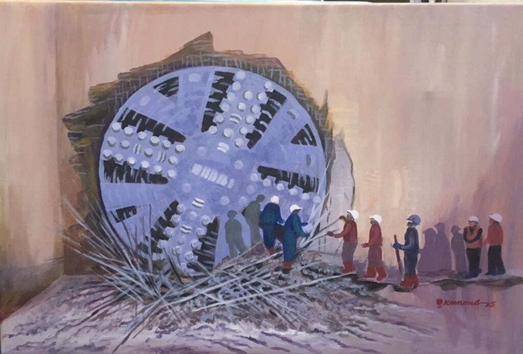 | "Khoan hầm metro" (Perçage du tunnel du métro), acrylique de Cao Minh Hồng. |