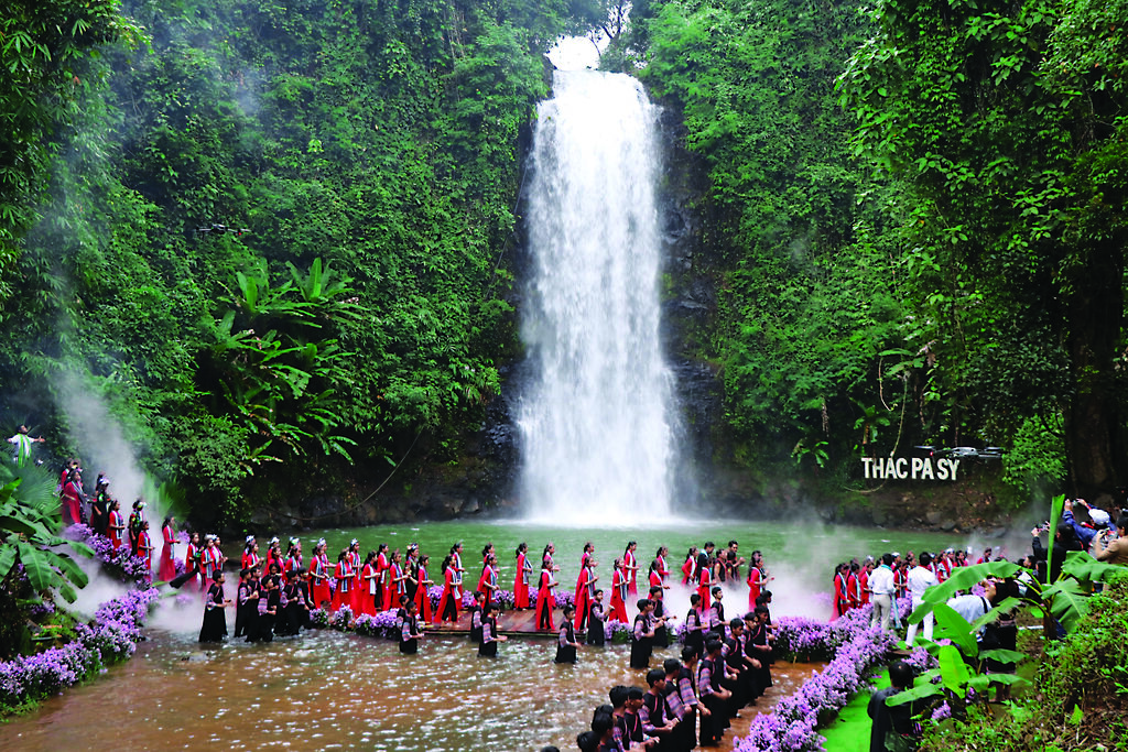 | Le défilé s’est tenu au pied de la cascade Pa Sy du district de Kon Plông, province de Kon Tum. |