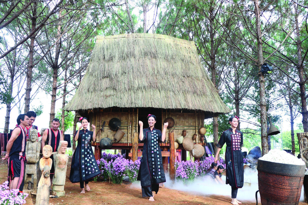 | Les motifs typiques du Tây Nguyên sont exploités. |