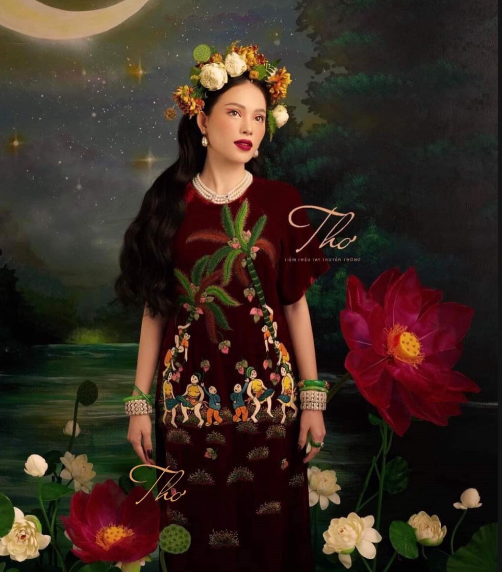La styliste Nguyên Tho Tho est propriétaire de la boutique Tiêm Tho, située au 12, rue Truong Hán Siêu, à Hanoï, spécialisée dans la création de tuniques traditionnelles brodées à la main en velours de soie fabriqué au Vietnam. Chaque pièce présente un look authentique, d’autant plus qu’elle est brodée d’estampes populaires de Đông Hô et de Hàng Trông, considérées comme un symbole de la culture traditionnelle et une valeur esthétique du Vietnam.