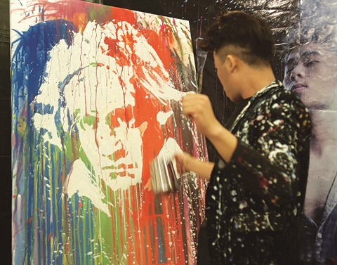 Quelques coups de pinceaux savamment distillés, des paillettes, et voici le visage de l'artiste Thành Lôc qui apparaît sous les yeux d’une assistance médusée, le tout en deux minutes chrono. L’auteur de cette performance ? Pham Hông Minh, un jeune peintre dont le talent n’est plus à démontrer.