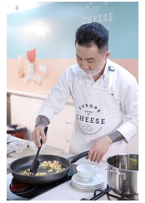 | Le chef de cuisine Câm Thiên Long présente des plats servis avec du fromage français au programme. |