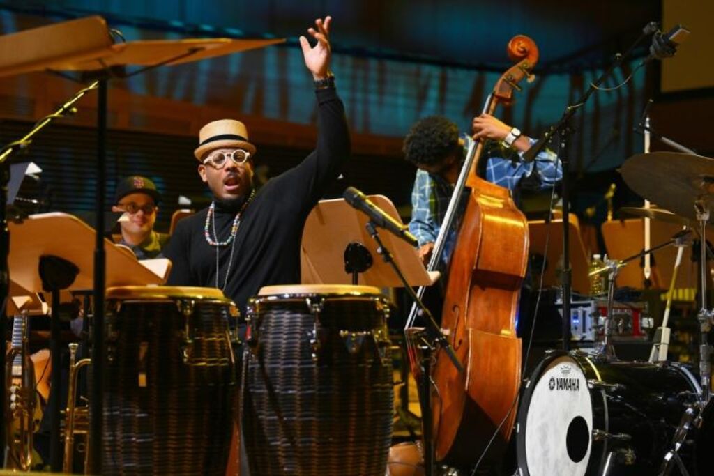 | Le trompettiste Etienne Charles lors d'une répétition avec l'Orchestre philharmonique de New York, le 4 octobre. |