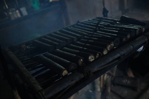L’autre étape importante qui décide la qualité du thé en tube, c’est le processus de séchage des tubes au feu. Afin d’avoir un produit de haute qualité, Vàng A Binh a testé son thé d’une manière plus sophistiquée et plus minutieuse. "Les tubes de thé se réchauffent au feu mais il ne faut pas non plus les enflammer ! Il faut maintenir le feu à un niveau stable. Le thé tire alors sa saveur de l’intérieur du tube. C’est ce qui donne une bonne odeur quand vous le mettez dans l’eau chaude pour l’infusion".