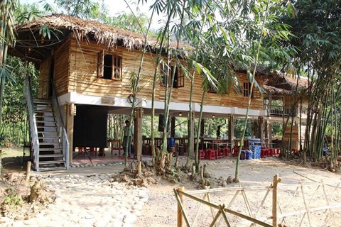 Le terrain sur lequel Dinh Van Nhu a construit sa maison d’hôtes s’étend sur 1.000 m², entre ruisseau et montagne. C’est une maison sur pilotis d’un seul étage, le rez-de-chaussée servant de salle de réception et de cuisine, l’étage étant capable d’héberger 30 personnes. Elle est simplement décorée de bois, de bambou, de pierre et d’objets traditionnels des Co Tu.