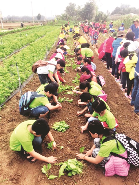 Tous les deux mois, l’école primaire-collège Duc Tri, ville de Dà Nang (Centre), organise une activité extra-scolaire dans une ferme de la banlieue. En se basant sur leur niveau scolaire, les groupes d’élèves se voient attribuer un certain nombre de tâches telles que: étudier les conditions pédoclimatiques afin de déterminer les plantes appropriées, classifier les racines, structures et disposition des feuilles, créer des planches ou encore semer des graines.