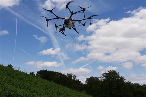 L’épandage par drone, particulièrement maniable et précis, est utilisé dans les vignobles californiens depuis des années. En Europe, il l’est en Suisse depuis environ trois ans et en Allemagne depuis 2018.