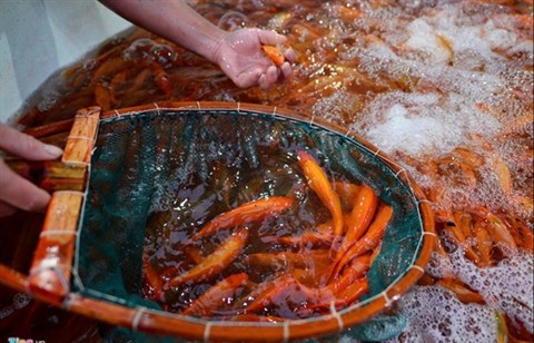 | Les carpes rouges qui servent à Ông Táo de véhicule pour monter au ciel. |