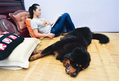| Ngoc Linh, une étudiante hanoienne, considère son molosse du Tibet comme un vrai ami. |