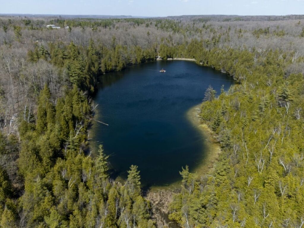 | Vue aérienne du lac Crawford près de Milton, au Canada. |