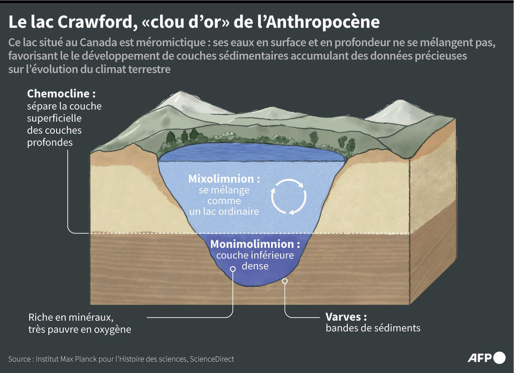Depuis des années, les géologues cherchent à établir l’endroit dans le monde (appelé le "clou d’or") qui constitue le meilleur étalon pour cette nouvelle époque géologique proposée, synonyme de l’impact considérable de l’activité humaine sur la planète. Et ce lieu est donc un petit lac dans la province canadienne de l’Ontario, en grande banlieue de Toronto, la principale ville du pays, a annoncé le groupe de travail sur l’Anthropocène, mis en place par la Commission internationale de stratigraphie (ICS).