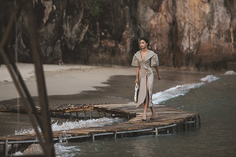 | Un modèle présenté lors du spectacle "Fashion Voyage 2" qui s'est produit sur l'îlot sauvage de Bàn Chân, en baie de Ha Long. |