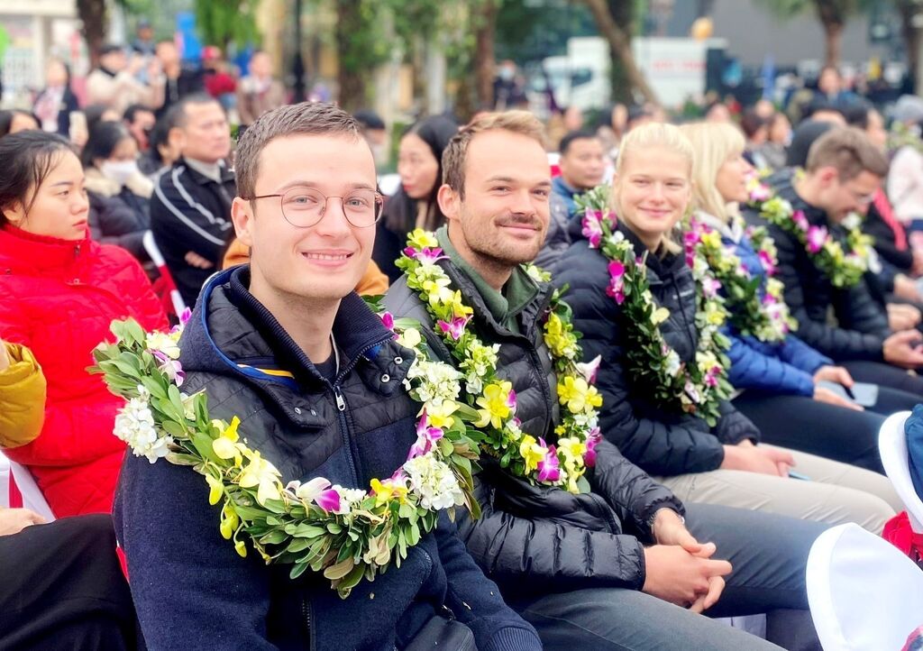 | Des visiteurs internationaux arrivant à Quang Binh. |