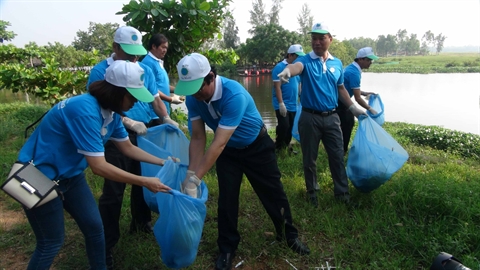 | Des habitants locaux participent à la campagne de collecte des ordures, le 17 septembre dans la province de Quang Nam (Centre). |