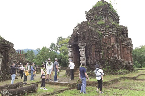 | Touristes au sanctuaire de My Son, patrimoine mondial de l’UNESCO, le 22 novembre 2021. |