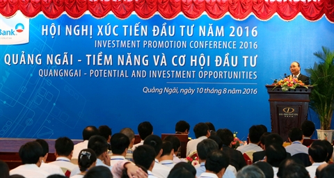 | Le Premier ministre Nguyên Xuân Phuc en plein discours à la conférence de promotion des investissements de Quang Ngai 2016, le 10 août. |