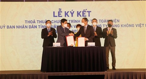 Cet accord permet une coopération stratégique et intégrale pour promouvoir Quang Ninh en tant que destination attrayante, renforcer le réseau des lignes de Vietnam Airlines desservant l’aéroport international de Vân Dôn (Quang Ninh), intensifier la communication autour des produits et services des parties concernées.