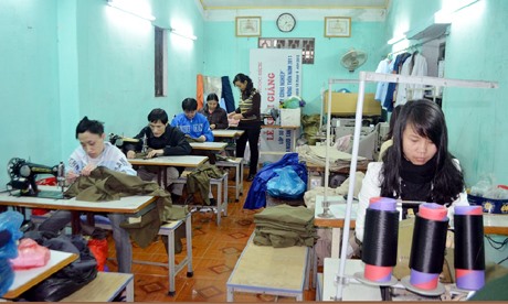 | Travailleurs handicapés dans la Compagnie de confection Ngoc Bich à Quang Ninh (Nord-Est). |
