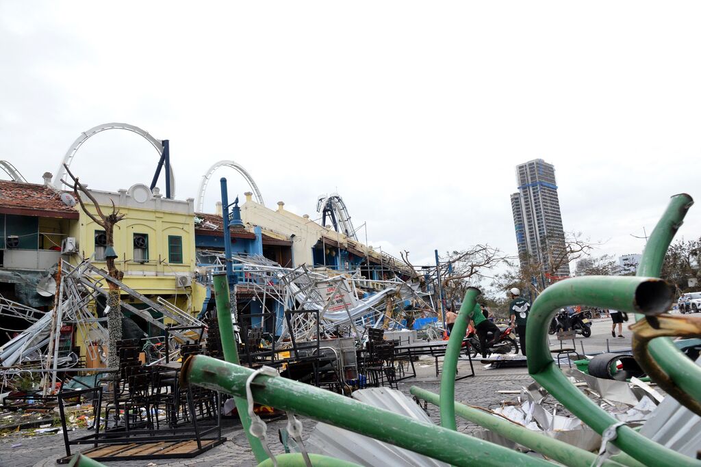 | Le typhon Yagi a ravagé de nombreuses entreprises d'hébergement : vitres brisées, toits emportés. |