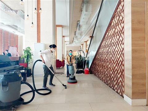 | Désinfection dans un hôtel à Quang Ninh (Nord) pour lutter contre le COVID-19. |